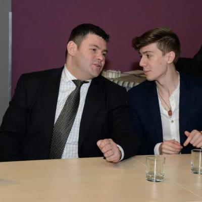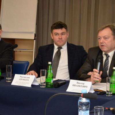 The participants of the round table were congratulated by the leaders of the largest trade unions of Ukraine: Gregory Osovy (Federation of Trade Unions of Ukraine), Mykhaylo Volynets (Confederation of Free Trade Unions of Ukraine) and Vyacheslav Roy (Federation of Unions of Small and Medium Enterprises of Ukraine).